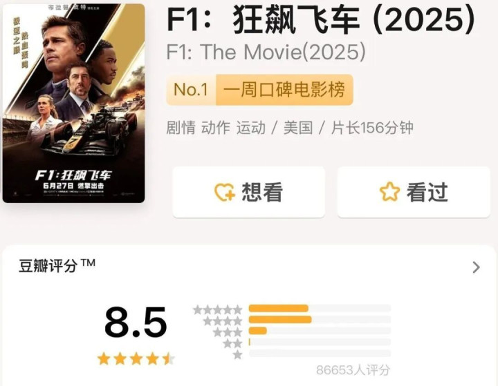 皮特的新电影《F1》正在上映。